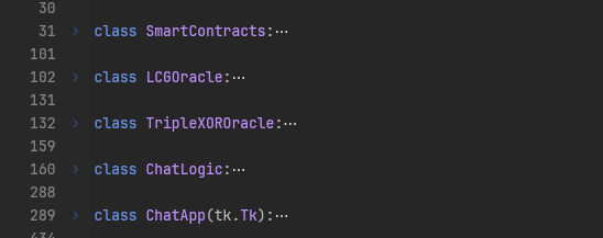 When taking a bird-eye’s few of the resulting decompiled code, we can immediately see some obvious things. For one, the Python code is not really obfuscated and has all the names intact. In particular, the code is nicely separated into classes with very descriptive names: