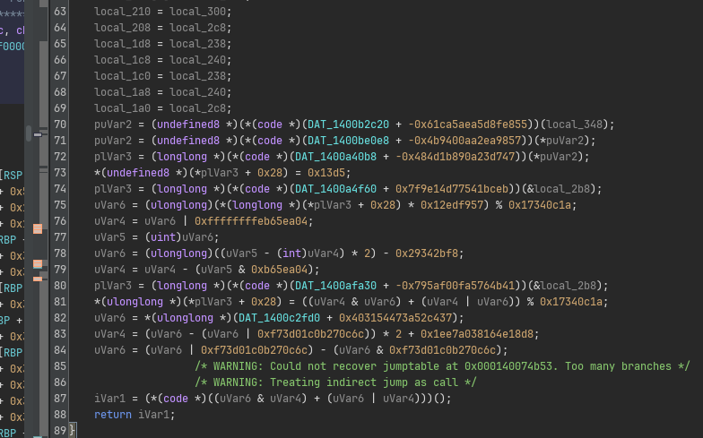 However going to the main function we can already get a taste of how badly obfuscated this entire program is: