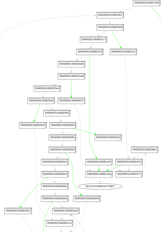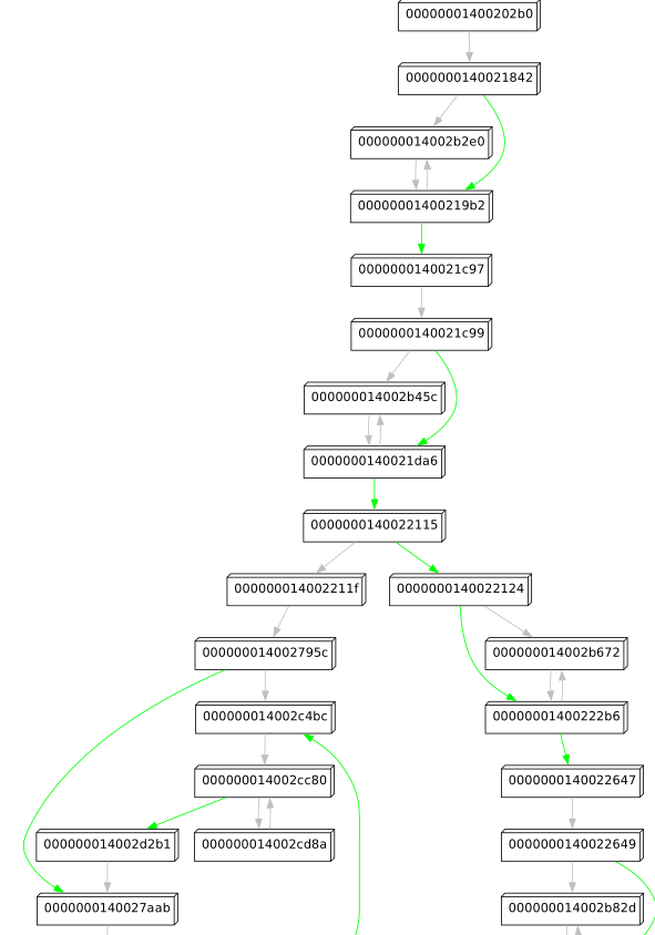 As the code of this binary seems very fragmented and all over the place, my first goal was to get an idea how control flow is realized.