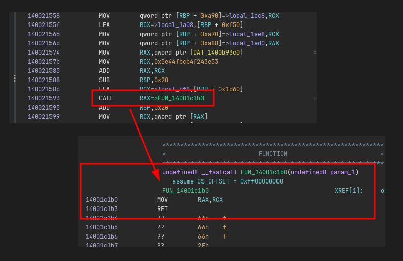 But then we see some calls to some function FUN_140081760 (magic_function in the picture) that is called right after.